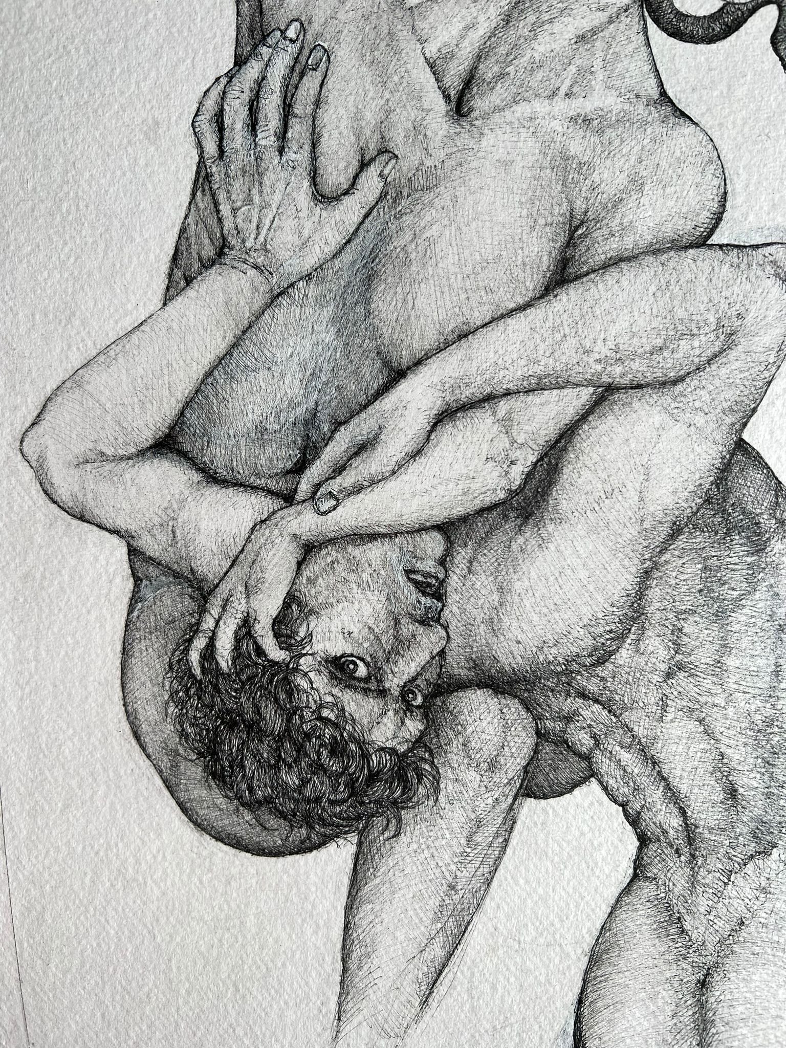 Engagée, l’Artiste crée en janvier 2024 l’Association Résiliente d’aide et d’accompagnement aux femmes et enfants victimes de violences, faisant alors écho à sa propre histoire. Elle co-écrit actuellement un livre du même nom sur la (re)découverte de soi, la force et la résilience dont ces femmes font preuve. L’artiste féministe use et abuse de références directe à la mythologie pour en détourner subtilement, parfois en inverser, le sens d’interprétation.